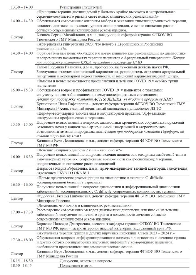 Областная научно-практическая конференция «Клинические рекомендации в практике врача – терапевта» Дата проведения 6 декабря 2023 года Ссылка на подключение: https://my.mts-link.ru/17891649/421979754 ПРОГРАММА
