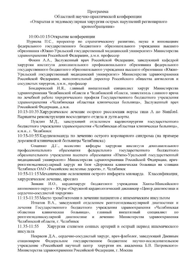 Областная научно-практическая конференция «Открытая и эндоваскулярная хирургия острых нарушений регионарного кровообращения» Место проведения: 8 ноября 2024 года Дата проведения: г. Челябинск, ул. Лесопарковая, 6, отель «ПаркСити» Сателлитный симпозиум (не входит в программу НМО)