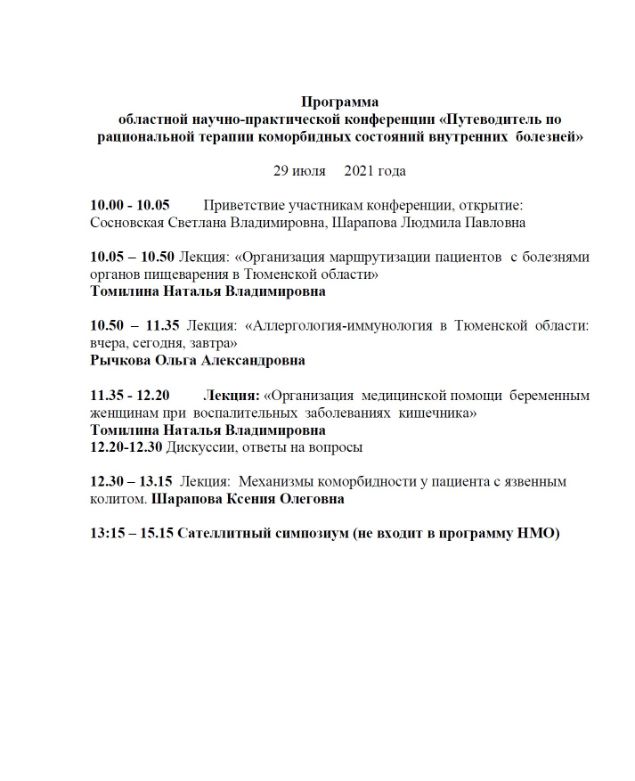 Областная научно-практическая конференция «Путеводитель по рациональной терапии коморбидных состояний внутренних болезней» |