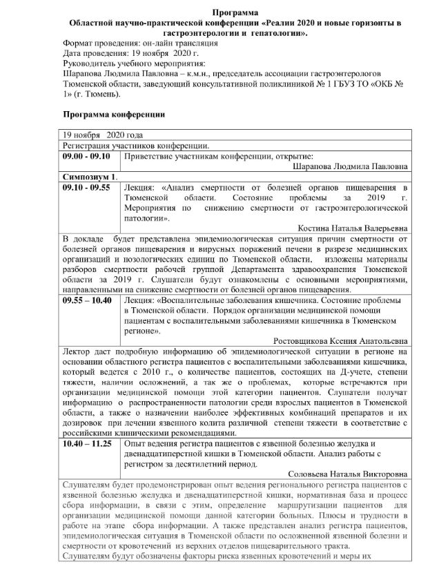 Областная научно-практическая конференция «Реалии 2020 и новые горизонты в гастроэнтерологии и гепатологии». |