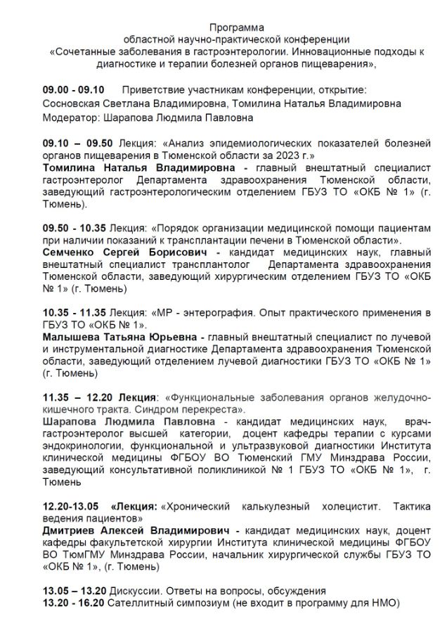 Областная научно-практическая конференция «Сочетанные заболевания в гастроэнтерологии. Инновационные подходы к диагностике и терапии болезней органов пищеварения» |