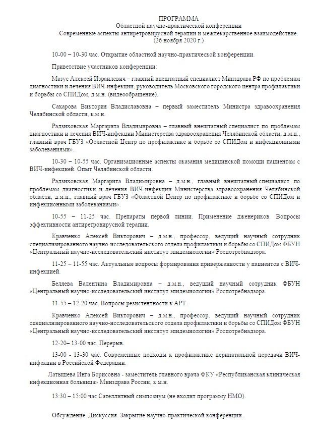Областная научно-практическая конференция «Современные аспекты антиретровирусной терапии и межлекарственное взаимодействие». |