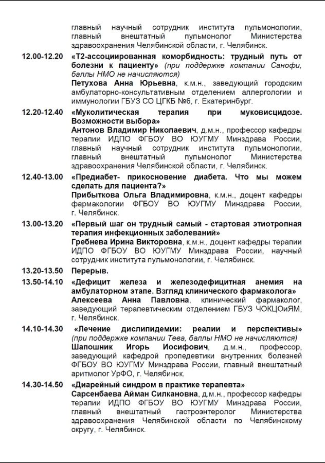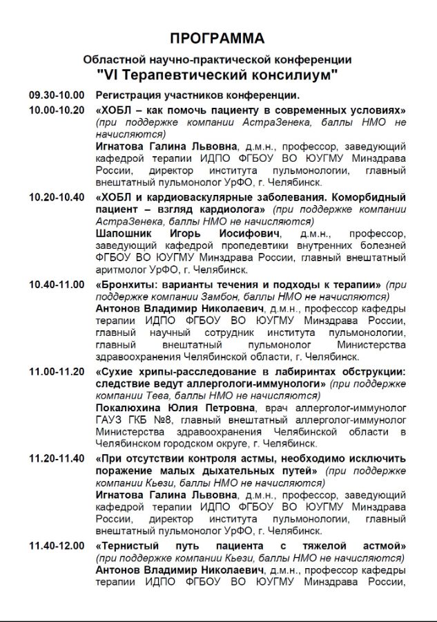 Областная научно-практическая конференция "VI Терапевтический консилиум" Дата проведения: 22 июня 2024 года Место проведения: г. Челябинск, ул. Лесопарковая, 6, Бизнес-Отель «Парк Сити»