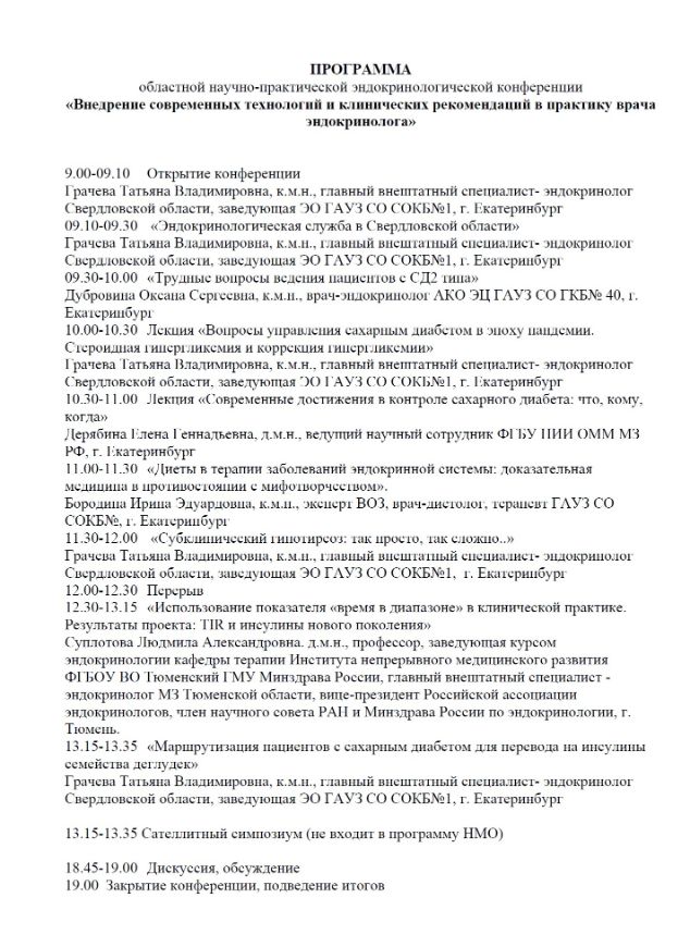 Областная научно-практическая конференция «Внедрение современных технологий и клинических рекомендаций в практику врача эндокринолога» |