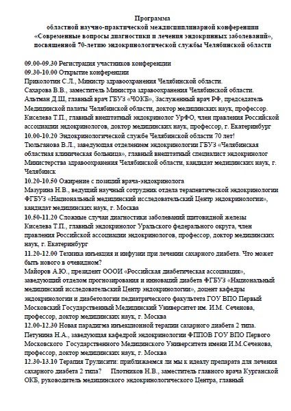 Областная научно-практическая междисциплинарная конференция «Современные вопросы диагностики и лечения эндокринных заболеваний», посвященная 70-летию эндокринологической службы Челябинской области |