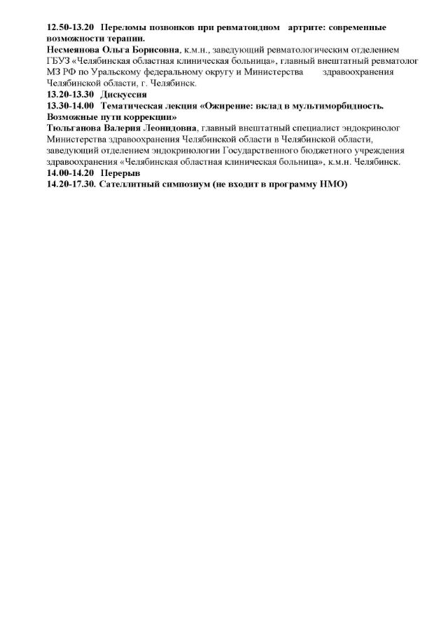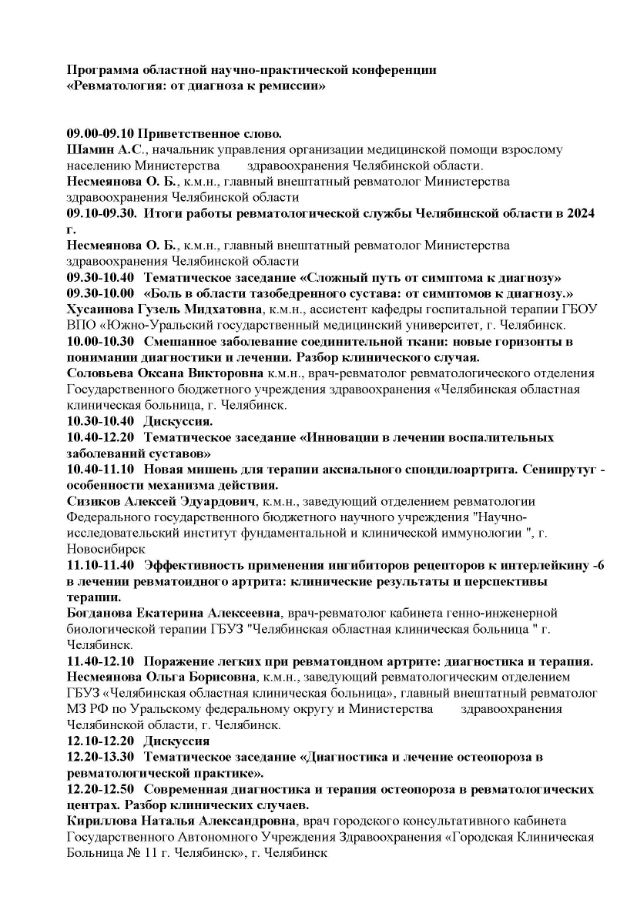 Областная научно-практическая «Ревматология: от диагноза к ремиссии» Дата проведения: 10 апреля 2025 г. Место проведения: г. Челябинск, ул. Труда , 153 , отель «Малахит» Сателлитный симпозиум (не входит в программу НМО)