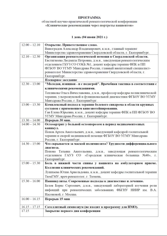 Областная ревматологическая конференция «Клинические рекомендации через портреты пациентов» |