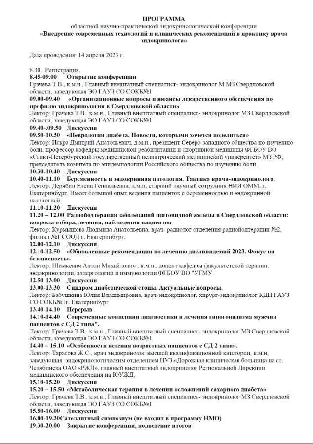 Областной научно-практической конференции «Внедрение современных технологий и клинических рекомендаций в практику врача эндокринолога» |