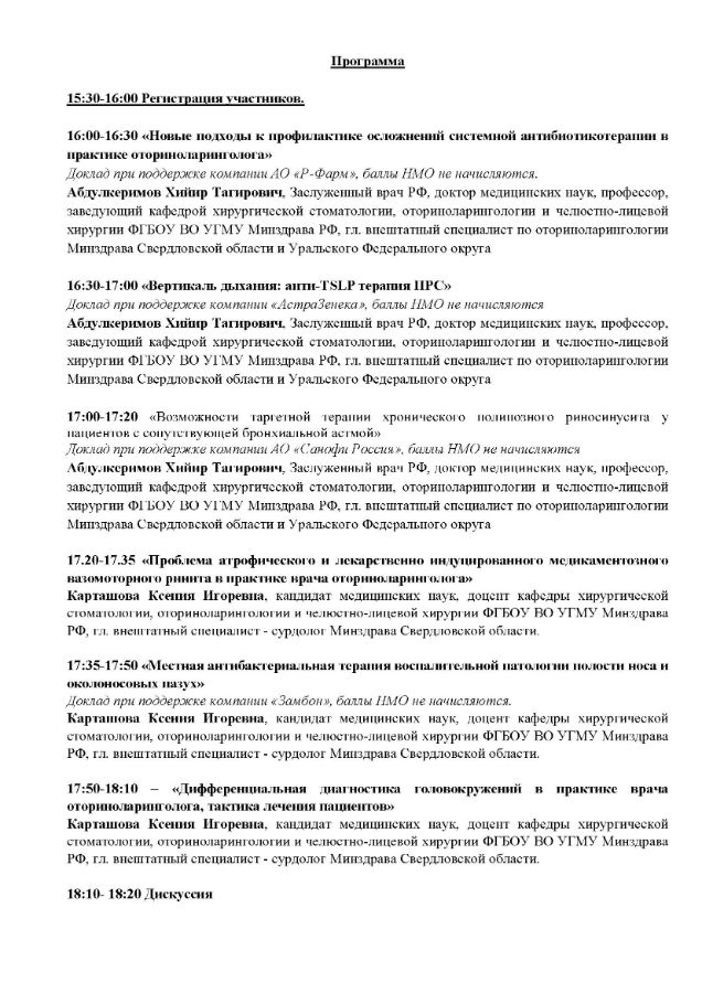 Очередное заседание ассоциации оториноларингологов Свердловской области Дата проведения: 19 февраля 2026 г. Место проведения: г. Екатеринбург, ул. Хохрякова, 1a, Отель «TENET»