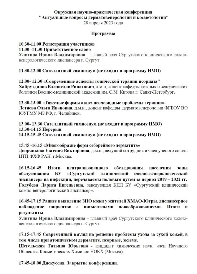 Окружная научно-практическая конференция " Актуальные вопросы дерматовенерологии и косметологии" посвященная 50-летию БУ ХМАО-Югры Сургутского клинического кожно-венерологического диспансера |