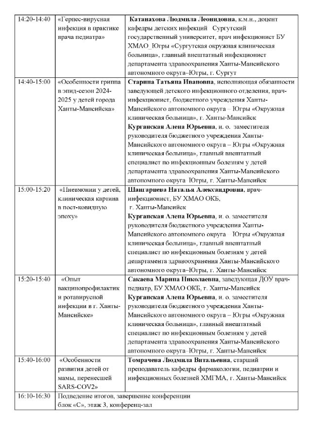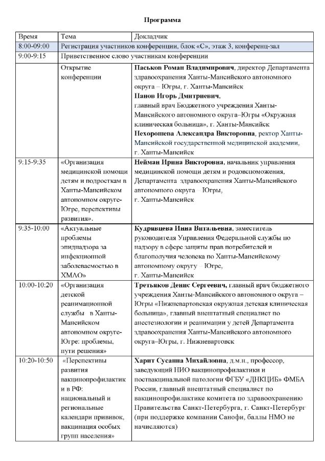 Место проведения: г. Ханты-Мансийск, БУ Ханты-Мансийского автономного округа–Югры «Окружная клиническая больница», ул. Калинина д. 40, конференц-зал.