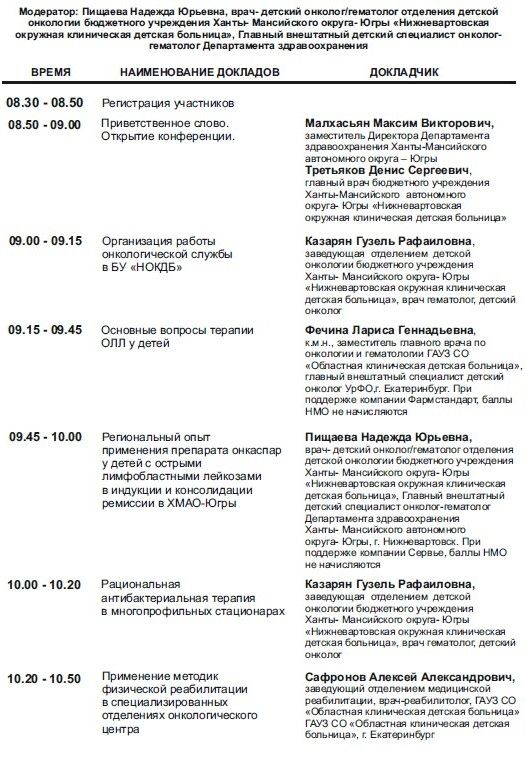 Окружная научно-практическая конференция «Актуальные вопросы детской онкологии и гематологии в Ханты-Мансийском автономном округе – Югре. Современный взгляд врачей детских онкологов и гематологов. Проблемы и перспективы» |