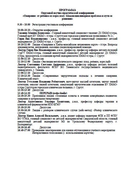 Окружная научно-практическая конференция «Ожирение: от ребенка ко взрослому. Междисциплинарная проблема и пути ее решения» |