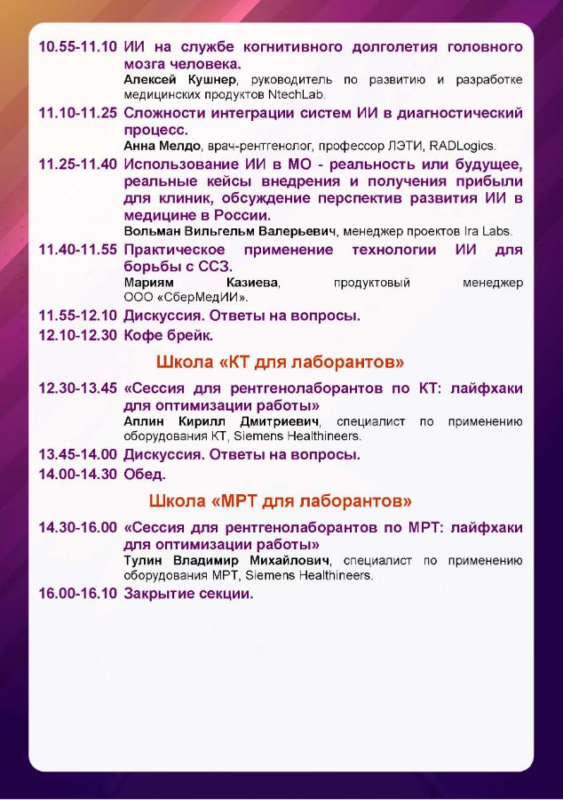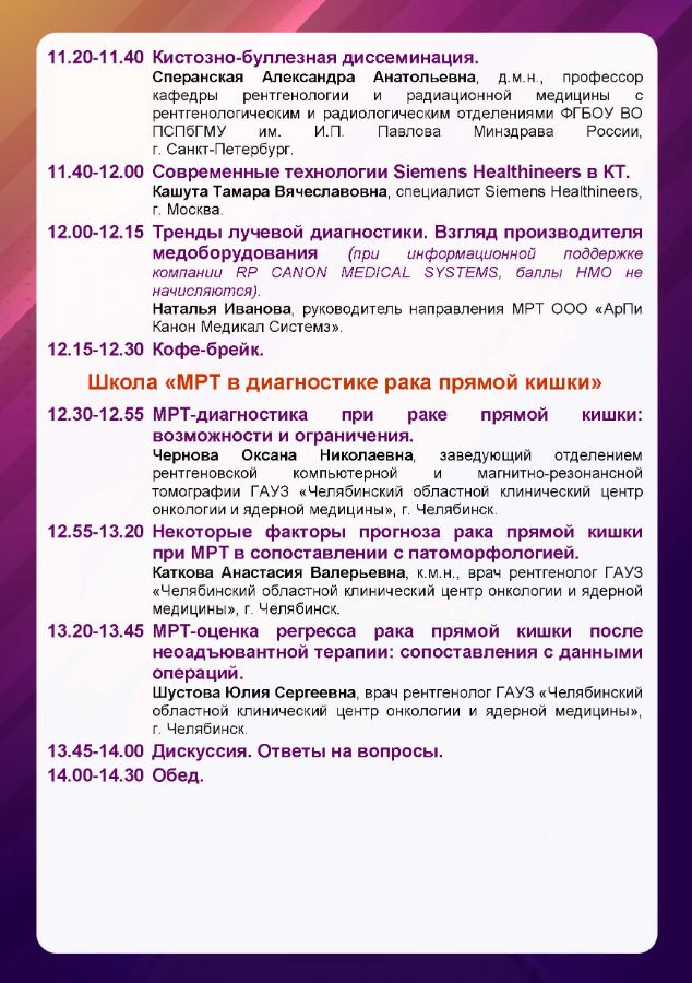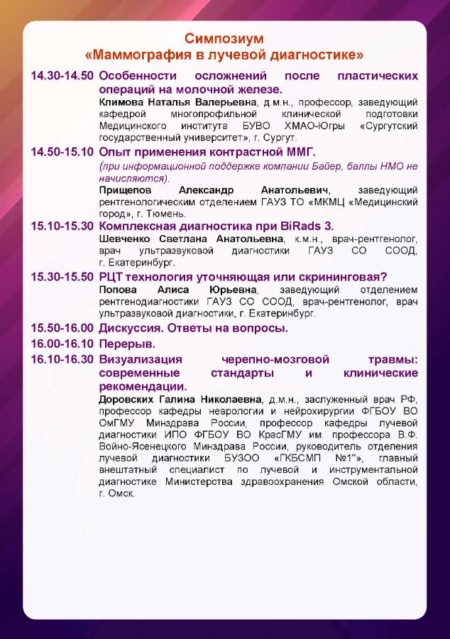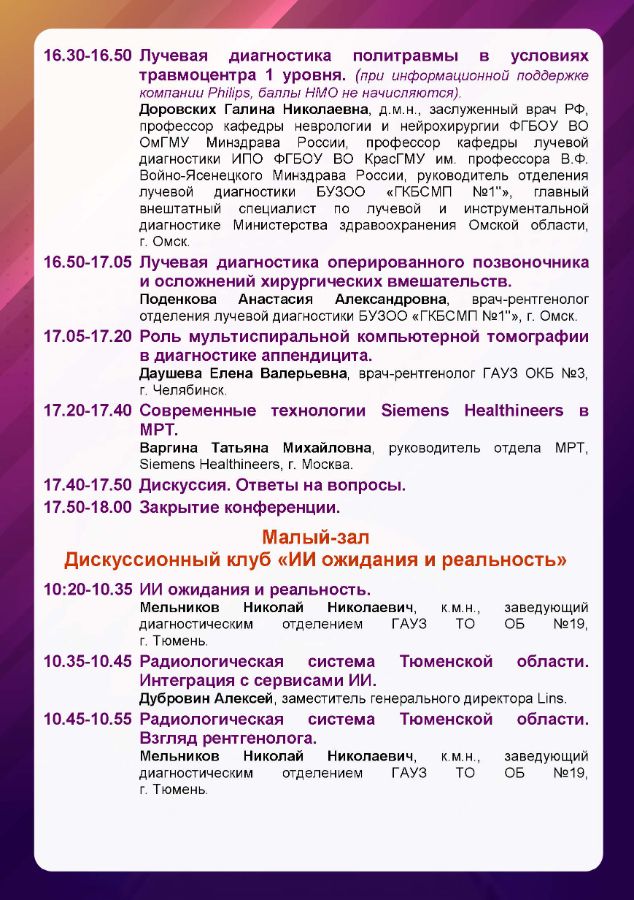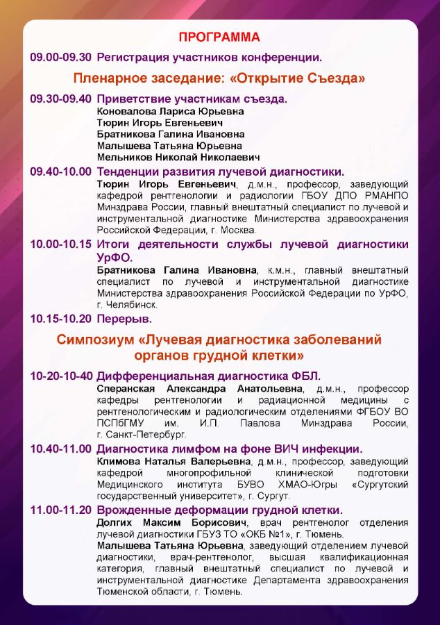 Первый съезд специалистов лучевой диагностики УрФО Дата проведения: 11 октября 2024 г. Место проведения: г. Тюмень, ул. Советская, 20, отель Евразия