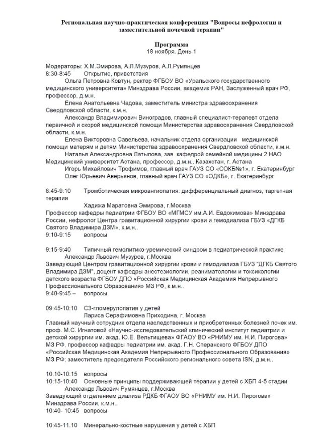 Региональная научно-практическая конференция "Вопросы нефрологии и заместительной почечной терапии" |
