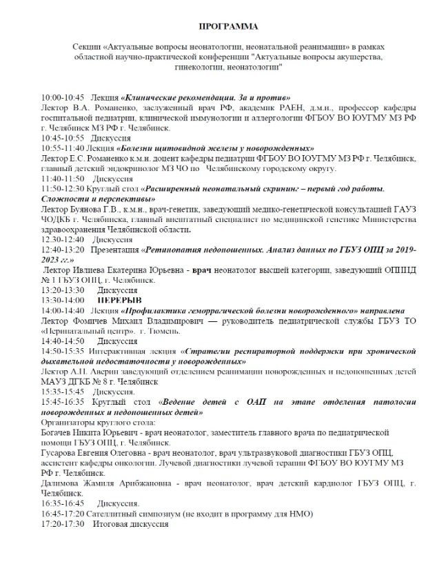 Секция «Актуальные вопросы неонатологии, неонатальной реанимации» в рамках областной научно-практической конференции "Актуальные вопросы акушерства, гинекологии, неонатологии" |