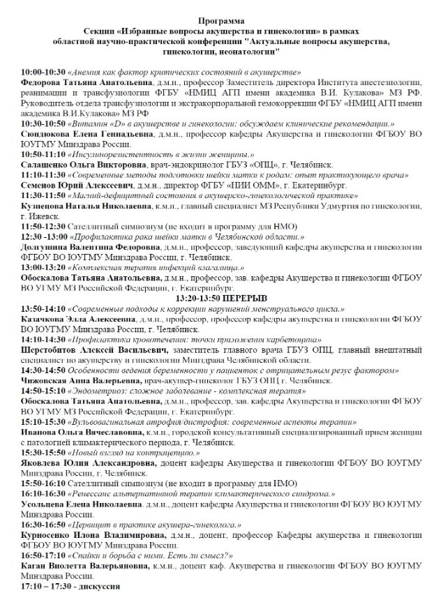 Секция «Избранные вопросы акушерства и гинекологии» в рамках областной научно-практической конференции "Актуальные вопросы акушерства, гинекологии, неонатологии" |
