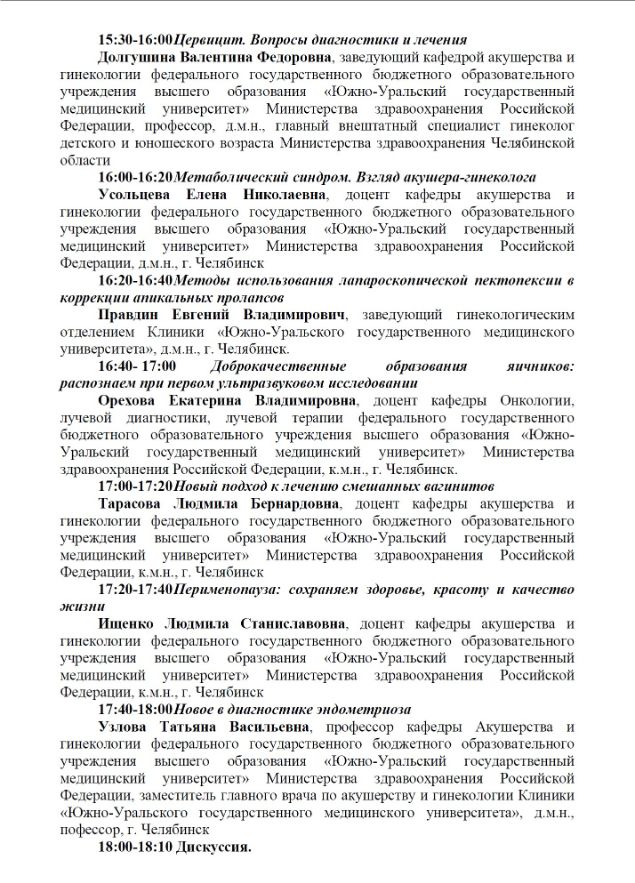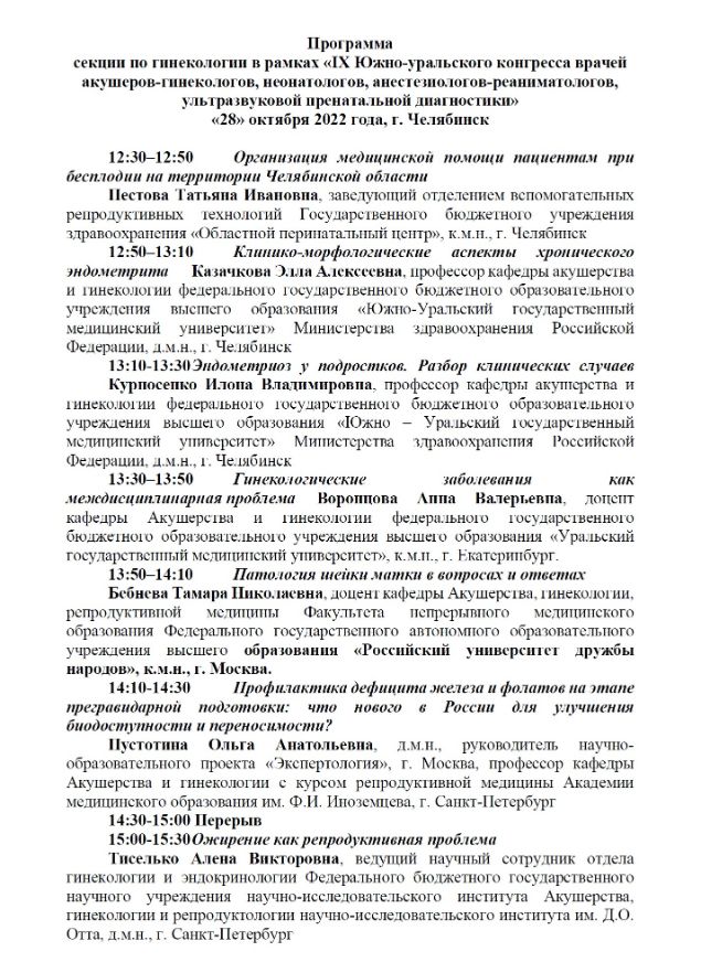 Секции по гинекологии в рамках «IX Южно-уральского конгресса врачей акушеров-гинекологов, неонатологов, анестезиологов-реаниматологов, ультразвуковой пренатальной диагностики» |