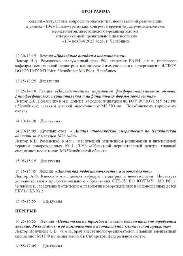 Секция «Актуальные вопросы неонатологии, неонатальной реанимации» в рамках "10-го Южно-Уральского конгресса врачей акушеров-гинекологов, неонатологов, анестезиологов-реаниматологов, ультразвуковой пренатальной диагностики" |