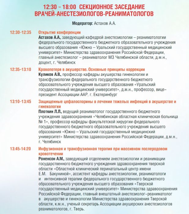 Секция по анестезиологии-реаниматологии в рамках «VIII Южно-уральского конгресса врачей акушеров-гинекологов, неонатологов, анестезиологов-реаниматологов, ультразвуковой пренатальной диагностики» |