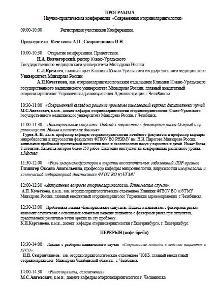 Научно-практическая конференция «Современная оториноларингология» Дата проведения: 28 сентября 2018 г. Место проведения: г. Челябинск, ул. Труда, 153, конгресс-отель Малахит