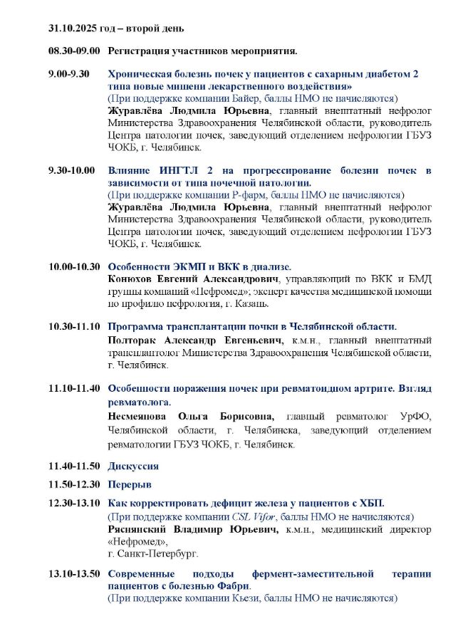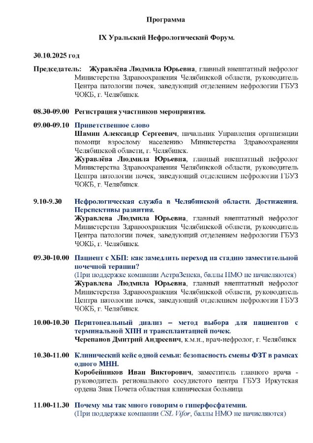 9 Уральский нефрологический форум Дата проведения: 30-31 октября 2025 год Место проведения: г. Челябинск, ул. Энгельса, 107, More Amore, конференц-зал