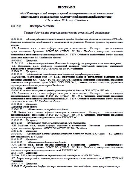 VI Южно-уральский конгресс врачей акушеров-гинекологов, неонатологов, анестезиологов-реаниматологов, ультразвуковой пренатальной диагностики |