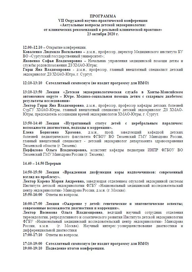 VII Окружная научно-практическая конференция «Актуальные вопросы детской эндокринологии: от клинических рекомендаций к реальной клинической практике» |