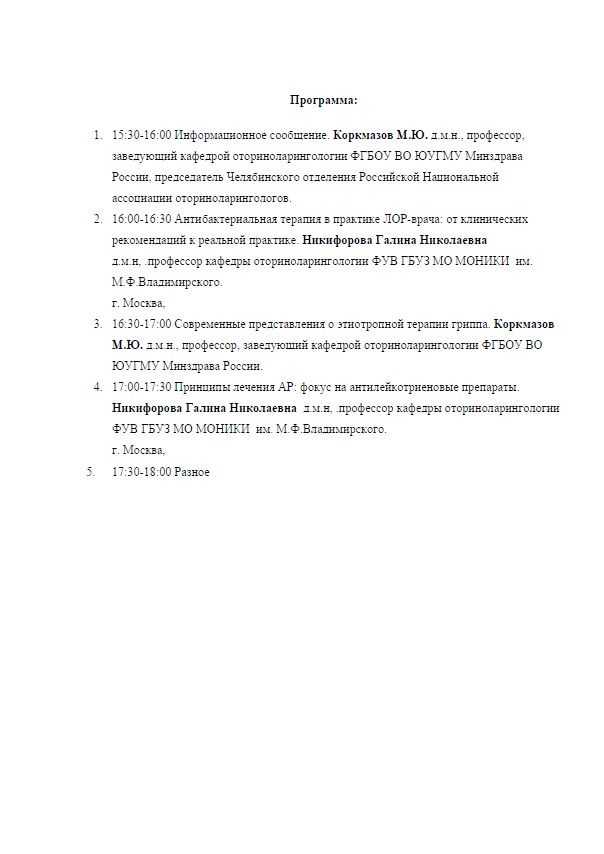 Заседание Челябинского отделения Российской Национальной ассоциации оториноларингологов «Грипп и его осложнения. Рациональные подходы к консервативной терапии». |