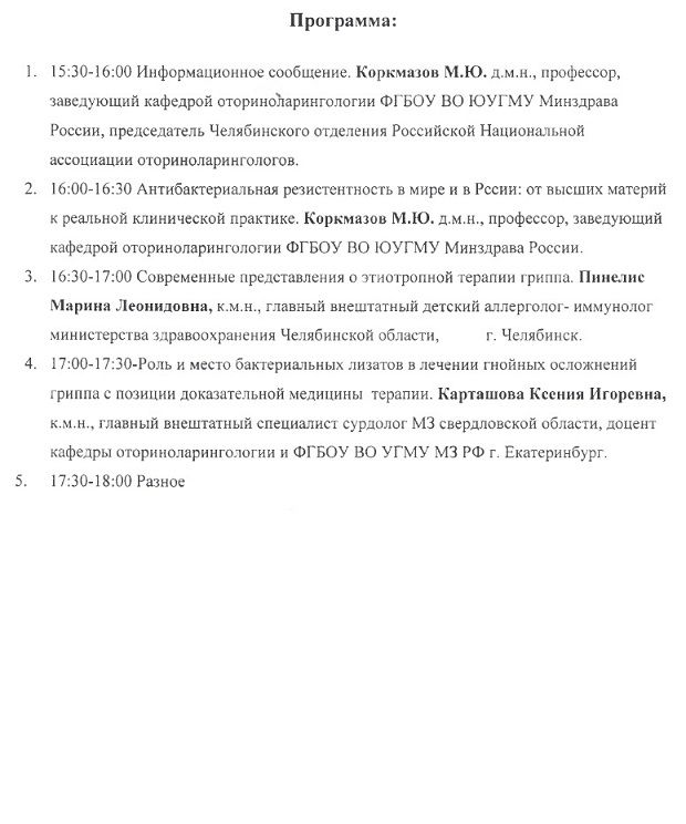 Заседание Челябинского отделения Российской Национальной ассоциации оториноларингологов «Грипп и его осложнения. Рациональные подходы к консервативной терапии» |